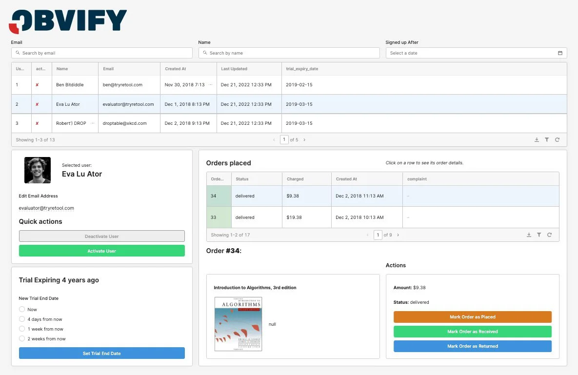 What we do in cases like this is create a custom interface that integrates external platforms (ecommerce store, customer support tool, payment processor, etc) and internal sources (databases and APIs) to make it simple for people to do their jobs. Our Interfaces include only the data people need to see to complete the task and are designed to make sure your systems are “unbreakable” by incorporating really simple access control rules.