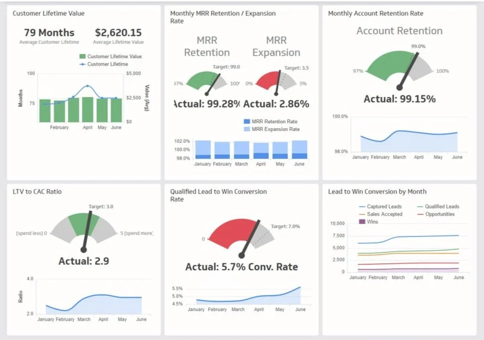 Depending on the type of company you have, this is likely one area where you’re burning the largest amount of your team’s time. This could be anything from regularly created client reports on performance to internal, leadership team presentations on key metrics. Behind all of this are a bunch people toiling away accessing multiple sources of data, formatting that data and combining it, and creating pretty pictures and presentations (that might not ever be looked at). And by the time they put in all this work, the data is out of date and they’re starting to put together the next report. If you’re doing any of the following, our Dashboards can definitely help you and save countless hours.